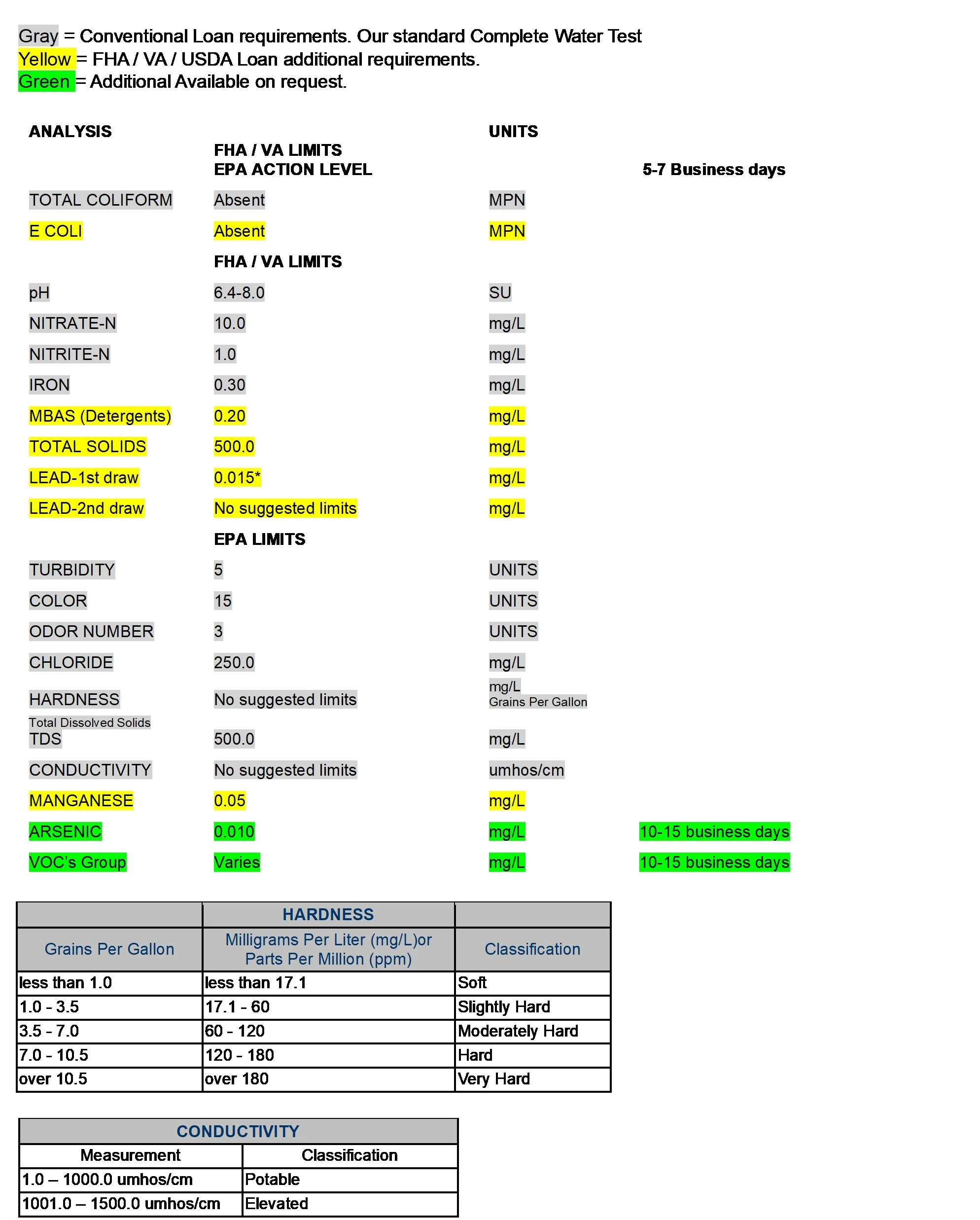 “Conventional Loan” - 12 parameters. Our most common Complete Water Test.